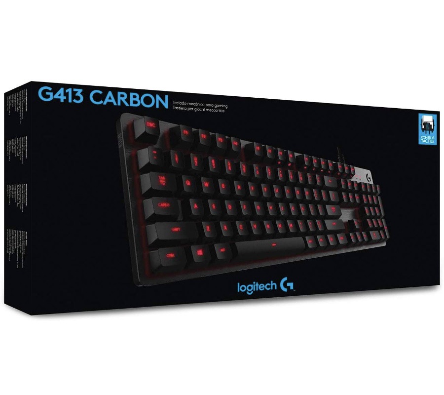 Teclado Gaming USB LOGITECH G413 CARBON, Mecánico con Retroalimentación, Negro