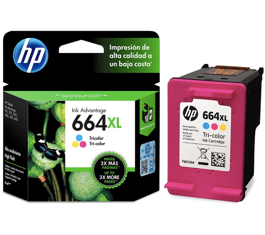 Tinta Original HP Ink Advantage 664XL Tricolor, Alto Rendimiento F6V30AL