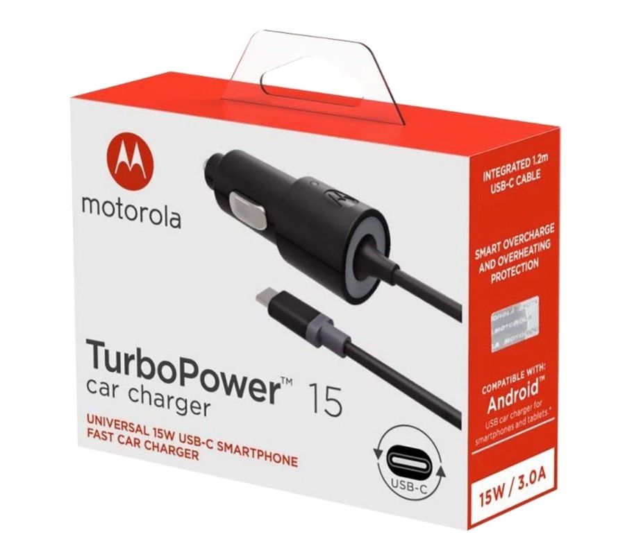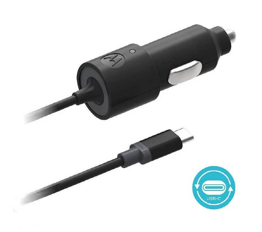Turbo Cargador para Auto Tipo C MOTOROLA 15W 3.0A, Negro
